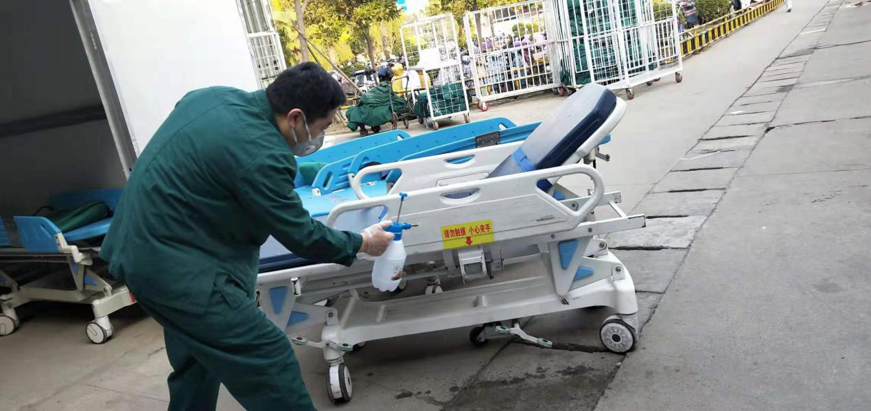 病区服务中心负责全员陪检、送药、无菌物品运送、氧气瓶运送、营养液运送、仪器调配等任务。到岗后立即组织科室老师和工人师傅对全部陪检工具进行清洗消毒,确保工具车辆的清洁,组织对工人进行培训,增强防护意识,尽量消除大家的心理负担。在这场突如其来的疫情防控战争中,科室涌现出很多感人的事迹。科室的吴华东师傅家离医院近二十里路程,27号一早等公交的时候才知道公交全部停运,步行两个多小时才走到医院,到岗后立即投入工作。阚言举师傅为了家人安全,自己住在庞庄矿,每天骑电动车要四五十分钟。科室老师们叮嘱他们注意安全,说“你们都住那么远,稍微晚一会我们都能理解”,吴师傅说:“我明天再早起一会,规划好路线,不能耽误上班”。就是这些朴实的话语,就是这群朴实的人,在这些平凡的岗位上默默地奉献着,为医院的各项平稳运行贡献着自己的力量,他们都是新时代最伟大的人。