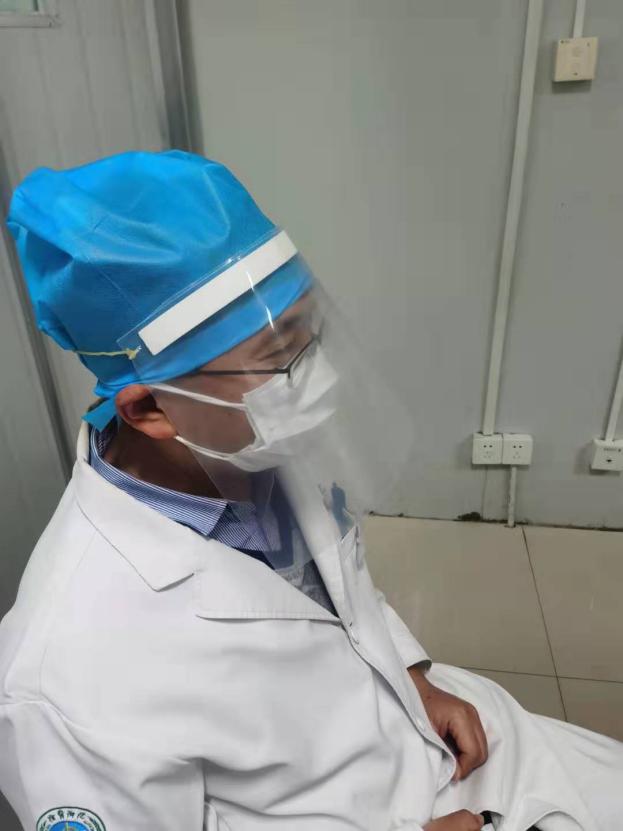 6、为在疫情一线的战友们节约物资,同时确保医护人员的防护到位,用治疗巾自制一次性帽子,用软皮文件夹自制防护面屏。