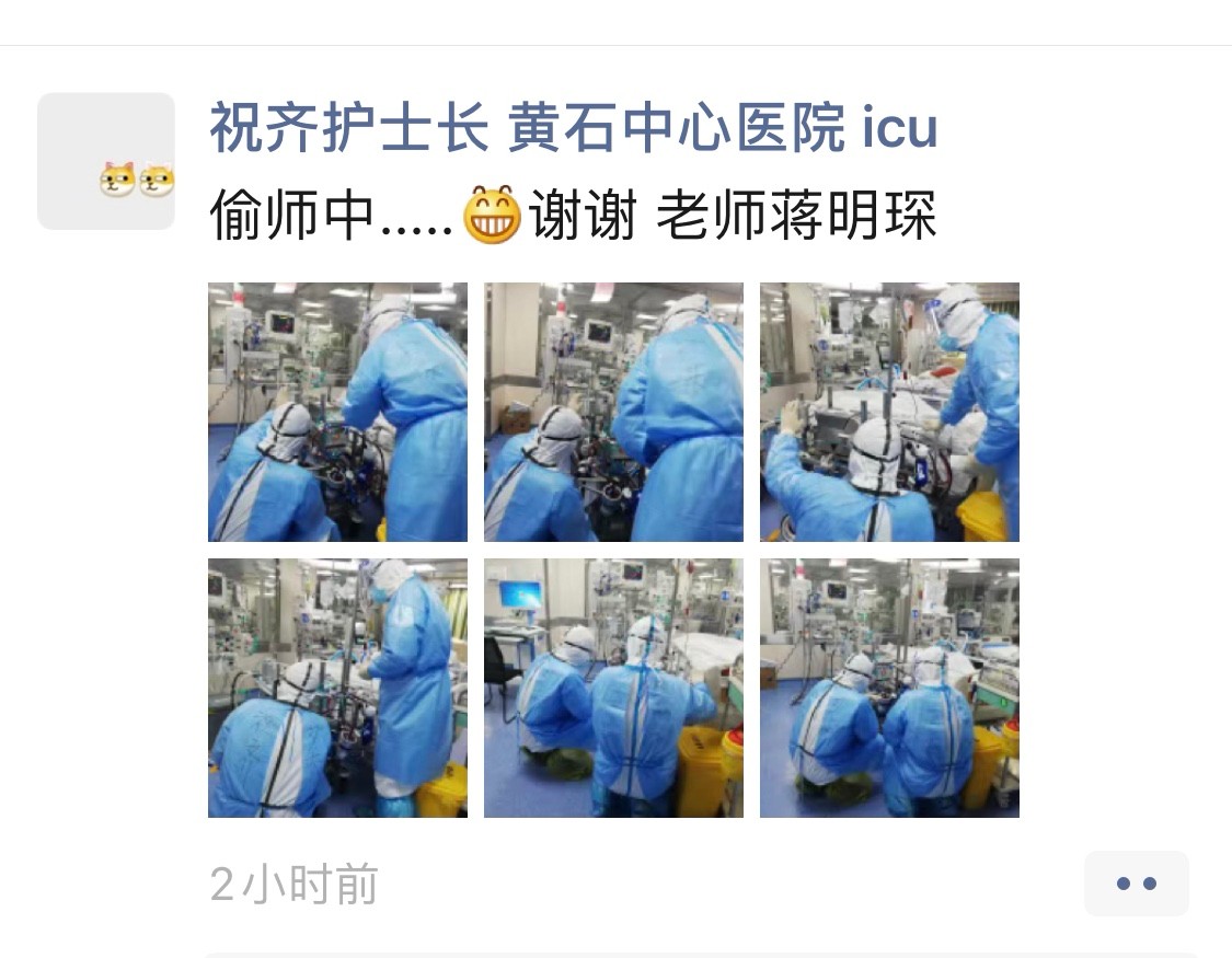 2月28日凌晨3点,我在去上班的途中接到通知,ECMO的病人已经到了医院。不久之前,大冶市人民医院的专家们紧急置管,ECMO顺利实施,随后立刻将患者从大冶市转到黄石市中心医院ICU,这是黄石市首次使用ECMO技术抢救新冠肺炎危重症患者,而我马上就要去护理这位刚刚转来的患者。