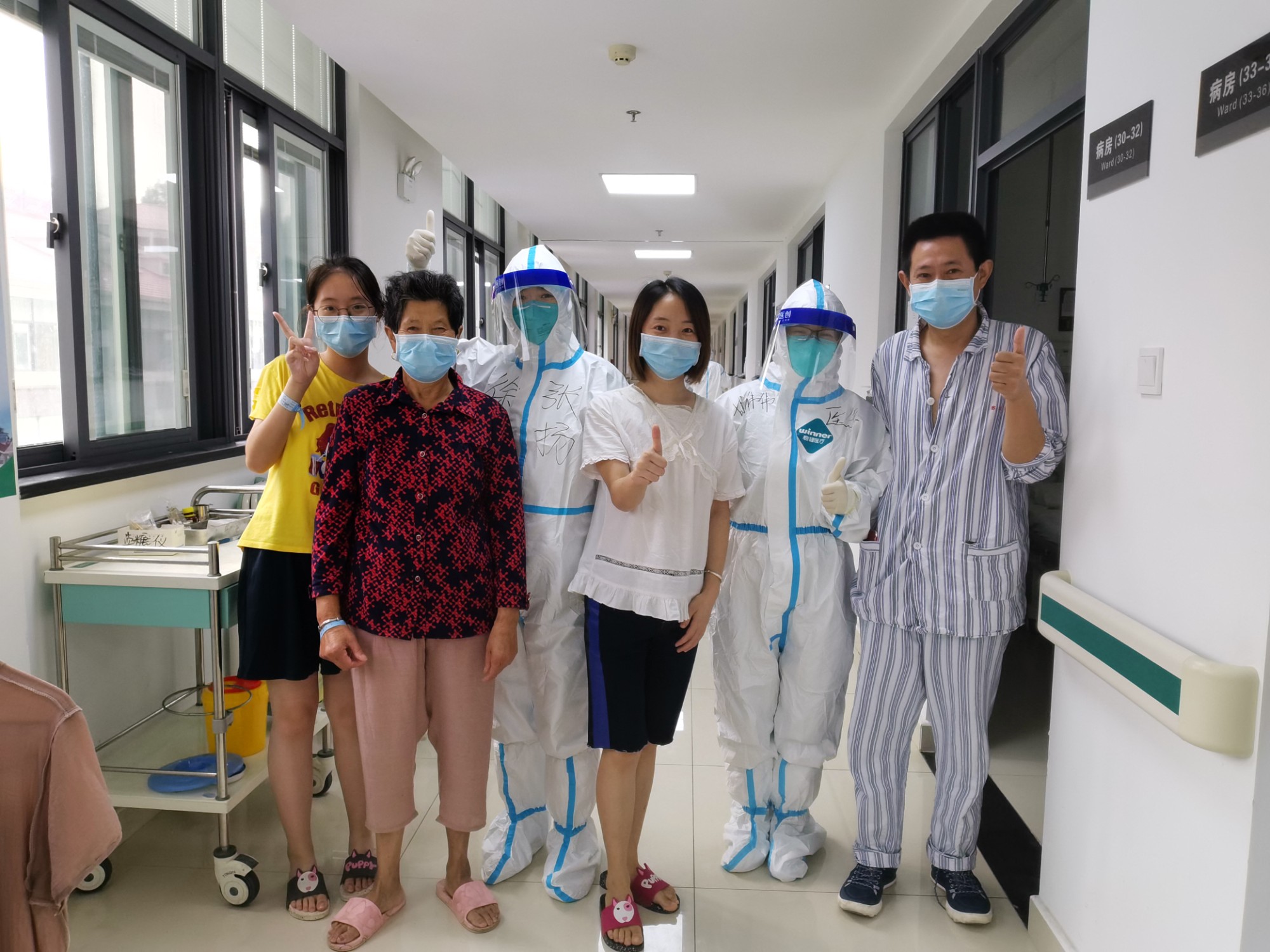昨天,我们病区的患者一家四口同时出院了,真是为他们高兴。当初,8月11日,刚到扬州的第一天,我们收治了一名16岁还在读初中的小姑娘,在住院期间我们得知,小姑娘的父母、奶奶,也先后确诊并收住院,但是分别在在不同的病区接受治疗。因为小姑娘年龄还小,独自一人很想家人。我们了解情况后,积极联系其他病区进行协调,最终把小姑娘的父母、奶奶转到我们病区,一家四口搬到了同一间病房,使他们能够团聚。七夕那天,我们把驻地酒店发给医护人员的巧克力、小蛋糕、牛奶等零食,作为礼物送给了小姑娘一家,他们非常开心。怎么说呢?我们是想用这种方式,给逆境中的小姑娘一点小惊喜,也能让她稍稍改善一下生活。一家四口中,四十多岁的父亲是病情较重的,刚转过来的时候高烧、呼吸困难,经过我们的精心治疗,病情渐渐就好转了。经过一段时间治疗,一家四口核算检测全部呈阴性,全部康复出院。