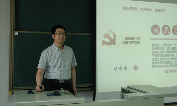 6月30日下午4:30,院第三总支在教学综合楼301大教室进行“两学一做”学习教育常态化制度化党课学习,六支部书记陶常波主讲,题目是《推进“两学一做”学习教育常态化制度化——贯彻落实中央<关于推进“两学一做”学习教育常态化制度化的意见>精神》,党课由四支部书记韩正祥主持,三总支党员、预备党员、入党积极分子共计200余人参加党课学习。