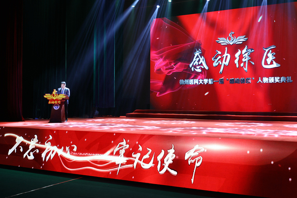 10月26日晚,徐州医科大学第一届“感动徐医”人物颁奖典礼在主校区文体活动中心举行。中国工程院院士、肝胆外科专家董家鸿,徐州市人民政府副市长李燕,南京医科大学党委书记王长青,徐州医科大学原党委书记、教育发展基金会副理事长吴永平,淮海战役纪念塔管理局党组书记、局长蒋越峰,中国人民解放军31603部队政委周忠廷,徐州市第一中学党委书记、校长陈青,江苏恩华药业集团总经理孙家权,新华网江苏医药健康事业部总监王伟,徐州医科大学党委书记夏有兵、校长,学校领导班子成员,“感动徐医”获奖人物,以及学校中层干部、教工党员、辅导员、班主任、家长、学生代表参加颁奖典礼。我院王延涛教授、曾因明教授、祖茂衡教授、许铁教授以及郭开今教授参与指导的益安“创青春”团队获此殊荣。