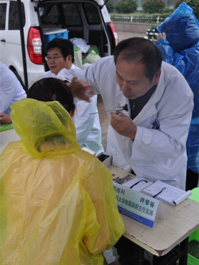 上午8:30,我院20位资深专家准时到达蟠桃社区广场,并立即投入到紧张有序的随访义诊活动中,尽管下着小雨,闻讯前来的出院患者和市民仍络绎不绝。随访办主任汪旻一直穿梭于人群中,为患者和居民耐心地接受咨询、解疑答惑、指导就医;常笑健康苑的工作人员还为群众免费量血压、测血糖等服务。现场多位居民争先恐后地对新周刊记者说“二院的专家真好,下着雨,还来为我们看病”,“跑了多少家都没治好的病,二院给我治好了,今天大夫又到家门口来看我……”,“俺眼睛以前看不见,其他几家医院大夫都说没法治,是李主任给俺做的手术,现在恢复的很好,今天李主任能到俺家门口来真是太好了,一来看看李主任,二来让李主任再给俺看看讲讲以后还要注意啥”,“以前从大城东跑去二院看病一去就是一天,孩子开车送还要请假又堵车,好不容易盼着现在东院开业,看病可方便了,自己就能去,看完回家还不耽误给孩子做饭”……