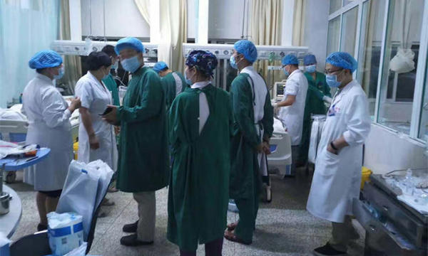 15日17时50分左右,徐医附院接到丰县人民医院请求医疗援助的电话,立刻组织胸心外科、神经外科、烧伤整形科、眼科、儿外科、重症医学科等与外伤救治相关的科室专家共7人,于半小时内奔赴丰县,分别前往丰县人民医院及丰县中医院投入会诊、手术等救治工作。