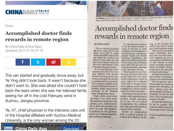 “来克州援疆,我们就是克州人”,叶英主任结合本地情况,就重症医学科的发展,提出了“医、教、研”等方面管理的思路,并在工作中实施,取得了初步成效,相关事迹在《中国日报》上报道。
