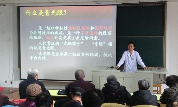3月18日上午9点,青光眼科普讲座在教学综合楼403室隆重举行,郭建新主任医师就青光眼的定义、分类、临床表现及治疗做了浅显易懂得讲解,并与来参会的来宾进行了互动交流和答疑。来宾认真听讲,积极提问,讲者专业细、耐心解答,现场气氛活跃。为今年的青光眼周划上了一个圆满的句号。