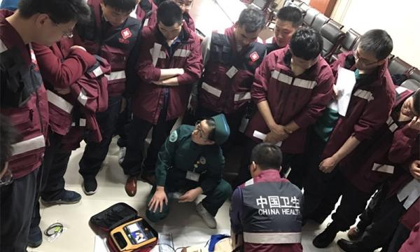 徐州医科大学附属医院是江苏省四大综合性紧急医学救援基地之一,作为徐州市突发公共卫生事件救援组长单位,在徐州全城迎接马拉松到来的同时,积极部署与实施马拉松赛事卫生应急保障工作。院精选呼吸科、神经内科、神经外科、肾内科、消化内科、骨科、耳鼻喉科、泌尿外科、胃肠外科、烧伤科、胸外科、急诊中心等13名主治医师以上职称的人员,同护理部13名男护、总务处2名助工组成一支综合性卫生应急救援队伍。自2016年11月开始,我院28名卫生应急队员先后参加徐州市卫计委组织的急救理论培训2次、急救技能培训4次、实战演练2次,为赛道上的卫生应急工作做了重要铺垫。