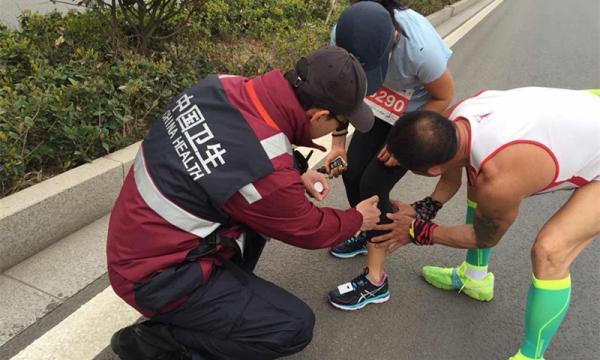 2017年4月9日,徐州历史上首届国际马拉松赛事顺利拉开帷幕。本次徐州马拉松赛总体规模庞大,共设全程、半程、迷你马拉松三个项目,共有两万人参与。由于马拉松是一项高负荷、大强度、长距离的竞技运动,也是一项高风险的竞技项目,在比赛途中参赛选手极易发生拉伤、中暑、昏厥、猝死等危险,因此,卫生系统应急保障工作承载了巨大的责任与压力。