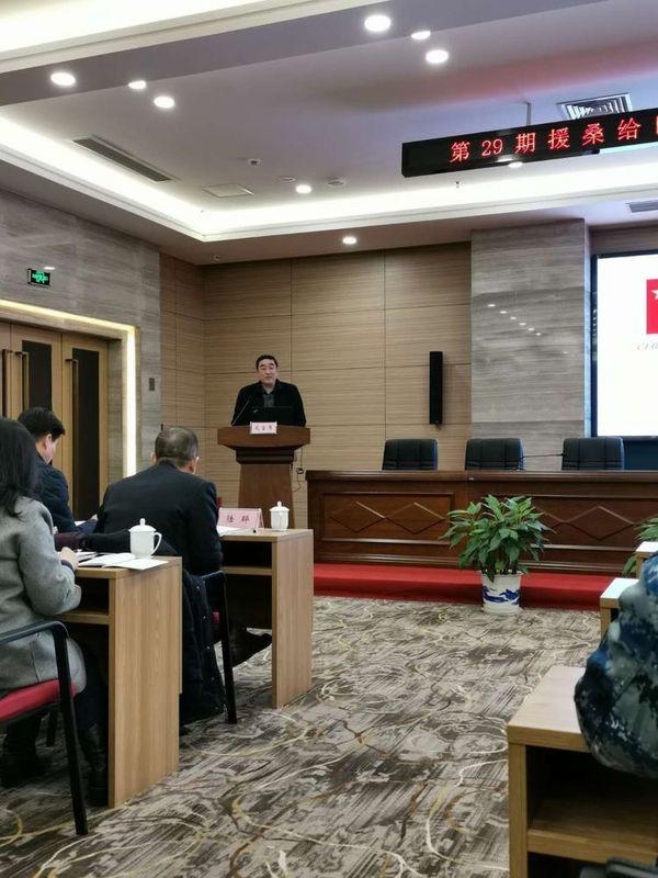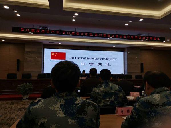 2月18日上午,2019年江苏援外医疗队培训班开学典礼在江苏全球卫生中心隆重举行。会议由省卫健委国际合作交流处处长石志宇主持,省卫健委李少冬副主任出席会议并作了重要讲话。我院党委书记、代理院长作为援外医疗队派员单位领导代表作了表态发言。各派员单位主要领导、分管处室负责人以及全体援外人员参加了典礼。我院参加第15期援圭亚队员为普外科杨军、骨科李强、麻醉科赵林林、肾内科王迪生、病理科吴燕妮、妇产科经莉、影像科陈高红、眼科王雷、烧伤科高新宇。