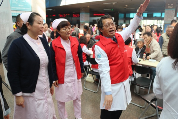 慕名前来咨询和就诊的市民在各个专家义诊台前有序排队就医。义诊专家和医护人员耐心细致地解答患者及家属提出的问题,发放脑卒中预防及康复知识手册,积极普及脑卒中防治知识,讲解脑卒中的常见危险因素。医护人员还为患者免费测量血压,并就疾病的预防与治疗进行健康宣教与用药指导。耿德勤教授等专家、脑心健康管理师、卒中专科护士就卒中识别及知晓情况进行了现场调研,发现不少群众及医护人员对脑卒中的认知和“黄金救治”时间不明,于是有针对性地开展了相应的科普。