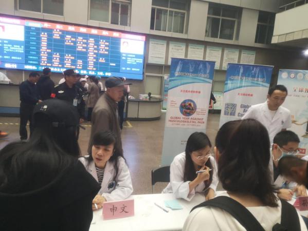 今年的主题是“全球预防疼痛”,10月11日上午,在申文教授、袁燕主任医师的带领下,疼痛科数十名医护人员围绕主题开展义诊活动。