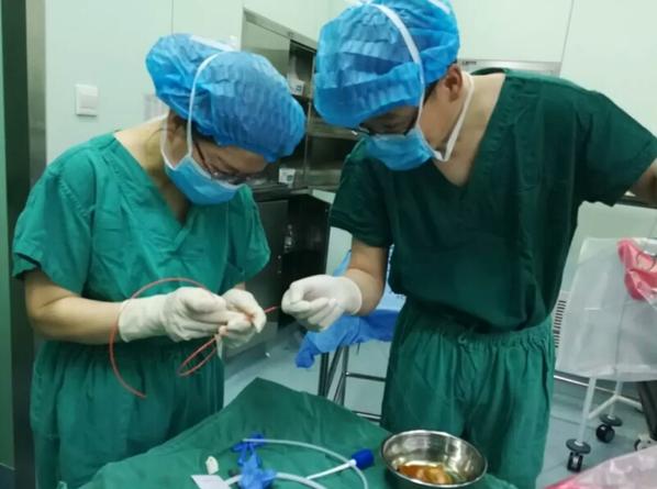 术中先由泌尿科医生置入膀胱镜及输尿管支架。陈书英主任、罗彩霞副主任主刀,避开胎盘,顺利取出胎儿。同时发现子宫中下段与膀胱致密的粘连,极度桶状膨隆,子宫表面血管怒张迂曲、蚯蚓状,陈主任立即用止血带捆扎子宫下段暂时阻断子宫动脉的血供,准备剥离胎盘,手术过程中,突然大量血液喷涌而出,瞬间患者脉搏升至125次/分,血压降至50/30mmHg。