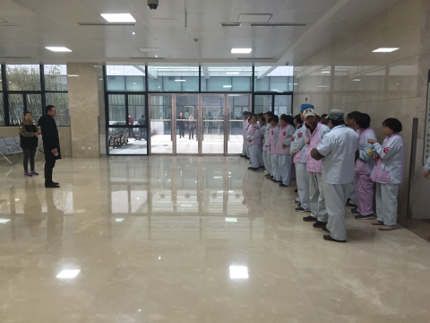 2016年12月23日,东院病房管理科组织班组(氧站、电梯班、被服、送检)、保安、保洁(上海遥瞻,山西汇佳天成)等科室的相关人员进行了2016年度消防演练。保卫处吴永捷处长现场讲解消防知识及指导消防器材使用。