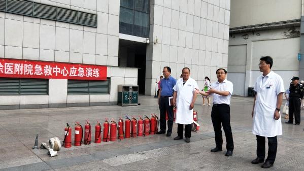 为提高医务人员的消防安全防范意识和消防安全应急能力,急救中心联合保卫处于7月8日在西门广场开展消防应急演练。副院长燕宪亮、宋军,急救中心主任许铁、保卫处处长卞希栋等莅临并参与演练。