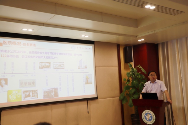 宋军副院长以幻灯片的形式简要介绍了徐医附院的基本情况,详细介绍了医疗安全、治安保卫、消防安全、后勤保障的工作亮点和存在不足。