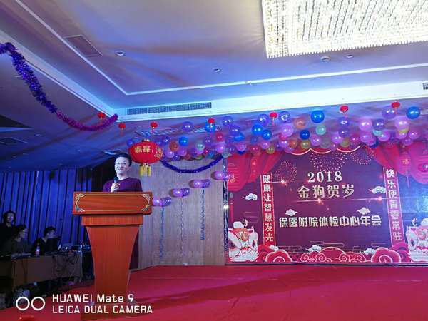 2月10日,体检中心全体人员欢聚一堂,用歌声、笑声喜迎2018的到来。院长发来贺函,对科室工作给予充分的褒奖,同时向体检中心全体员工致以新春问候,祝福大家新年快乐,全家安康。三总支马秋芳书记出席本年会,与体检中心共庆佳节。