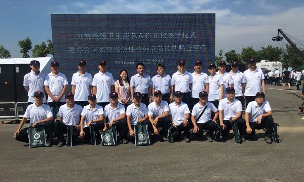 8月25日上午,为加强卫生应急队伍联动协调和跨区域卫生应急能力,提高联合应对重大突发事件的卫生应急处置能力,江苏、山东、安徽、河南四省卫生计生委联合在徐州市贾汪区组织了“苏皖鲁豫卫生应急合作协议签字仪式暨苏鲁国家突发急性传染病防控队联合演练”活动。按照医院统一安排,由我院常务副院长顾玉明、医务处副处长梁勇、感染管理科副科长茅一萍带队,率领我院24名卫生应急处置队员着装整齐按时赶赴贾汪区苏鲁国家突发急性传染病防控队联合演练地参加现场观摩活动。虽然户外温度高达33度,但我院队员仍能在观摩过程中服从指挥、统一观摩,并对演练中模拟案例的处置程序、分析方法认真思考,总结学习。