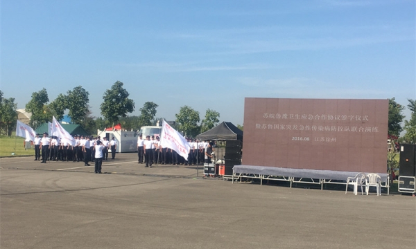 顾玉明常务副院长带队观摩“苏皖鲁豫卫生应急合作协议签字仪式暨苏鲁两省国家突发急性传染病防控队联合演练”活动