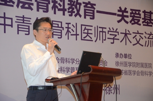 徐州站活动启动仪式在博顿温德姆酒店举行。江苏省医学会骨科学分会副主任委员、徐医附院骨科主任郭开今教授主持启动仪式。徐州市卫计委俞军副主任,徐医附院副院长金培生教授,中华医学会骨科学分会青年委员会副主任委员、北京协和医院赵宇教授,江苏省医学会骨科分会副主任委员、江苏医学会骨科学分会青年委员会主任委员、江苏省人民医院骨科主任范卫民教授出席了启动仪式并分别致辞。来自徐州和苏鲁豫皖四省接壤地区的100余位骨科医生参加了学术交流活动。