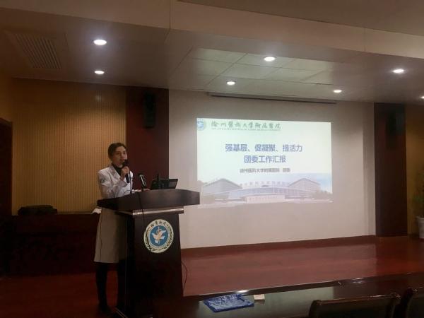 随后,孙婷书记介绍了我院当前的青年职工比例、团组织机构及团员专业结构,并表示青年职工是医院发展的重要组成部分,我们要打造青春热血、朝气蓬勃、开拓奋进、勇于创新的徐医附院青年面貌。同时鼓励所有团干部踏实工作、以更饱满的热情、更积极的态度去感染身边的每一位职工,强化使命担当,发挥好模范带头作用。接着,孙婷书记布置了2019年第二季度的团委重点工作,希望所有团干部都能够增强责任心和使命感,积极作为。