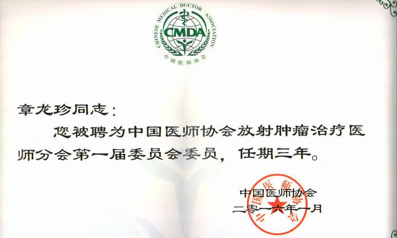 章龙珍教授当选中国医师协会放射肿瘤治疗医师分会第一届全国委员、新一届江苏省医学会放射肿瘤治疗学分会副主任委员