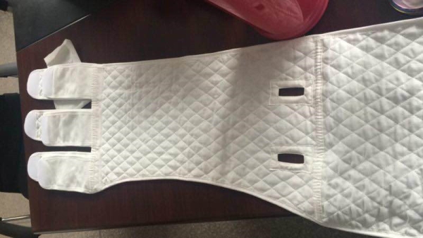 为了优化传统腹带的不足,缓解患者的病痛,急诊病区的主管护师朱晓会,在科室高云护士长和蒋丽护士长的指导下,经过多年的临床观察实践,积极探索研究,设计出了一款新型腹带,于2015年顺利通过了国家专利技术申请,获得了“实用新型专利证书”。并与今年实现了临床转化,即将投入临床试用,为广大腹部手术患者带来了福音。
