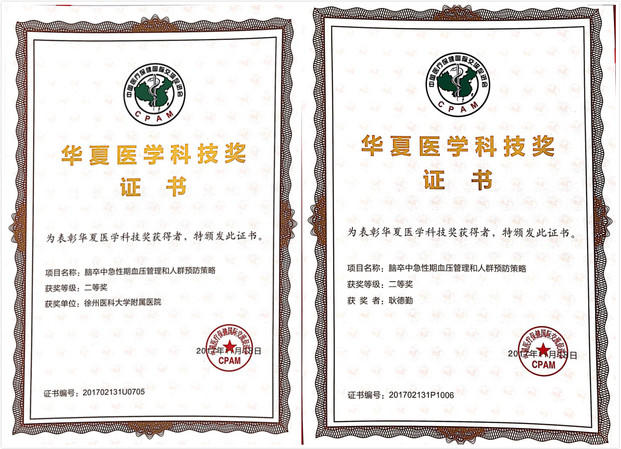 自设立以来,华夏医学科技奖已成功举办六届,共计315项成果获奖,其直荐的多项成果获得国家科技进步奖。本次大会对近一年内国内医药卫生领域的重要科技成果进行了奖励,其中一等奖9项、二等奖25项、三等奖36项以及特别贡献奖4项受到了表彰,出席会议的领导及两院院士向获奖代表颁发了奖励证书。我院神经内科主任耿德勤教授率领的脑卒中团队积极投身多中心卒中防治临床研究,参与的“脑卒中急性期血压管理和人群预防策略”成果获得华夏医学科技奖二等奖。