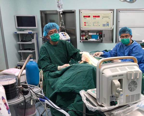 徐医附院甲乳外科梁骁主任接诊了小王,经过详细的体检和彩超等检查,小王被诊断为男性乳腺发育。在科主任郭萌教授的指导下,梁主任给小王制定了微创旋切治疗的方案,于2018年1月30日给小王进行了微创手术。