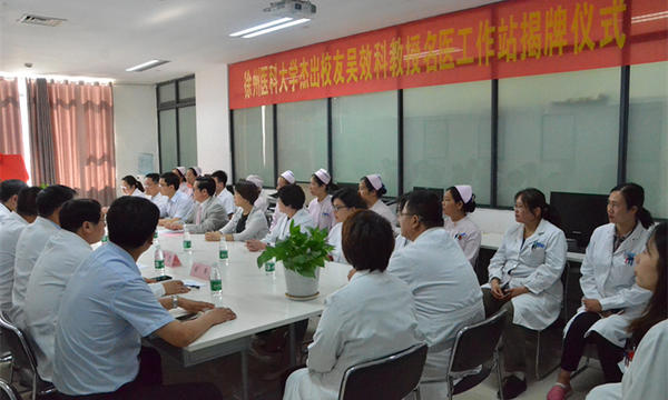 会上,副院长王志萍宣读《关于成立徐州医科大学附属医院吴效科教授名医工作站的通知》,书记为吴效科教授颁发聘书,并和吴教授一起为“徐州医科大学附属医院吴效科教授名医工作站”揭牌。妇产科副主任、产科主任韩秋峪代表科室在会上作表态发言。