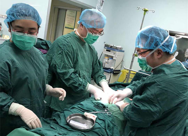 充分评估病人病情后,徐州医科大学附属医院肾内科孙东主任、王迪生主任,带领孔刘莎主治医师、王佳住院医师,成功开展并完成了我市首例腹膜透析套管针穿刺置管术。医生在患者的脐旁开一个小切口,插入套管针建立手术通道,成功把腹膜透析导管底端精准地放在膀胱直肠陷凹处。