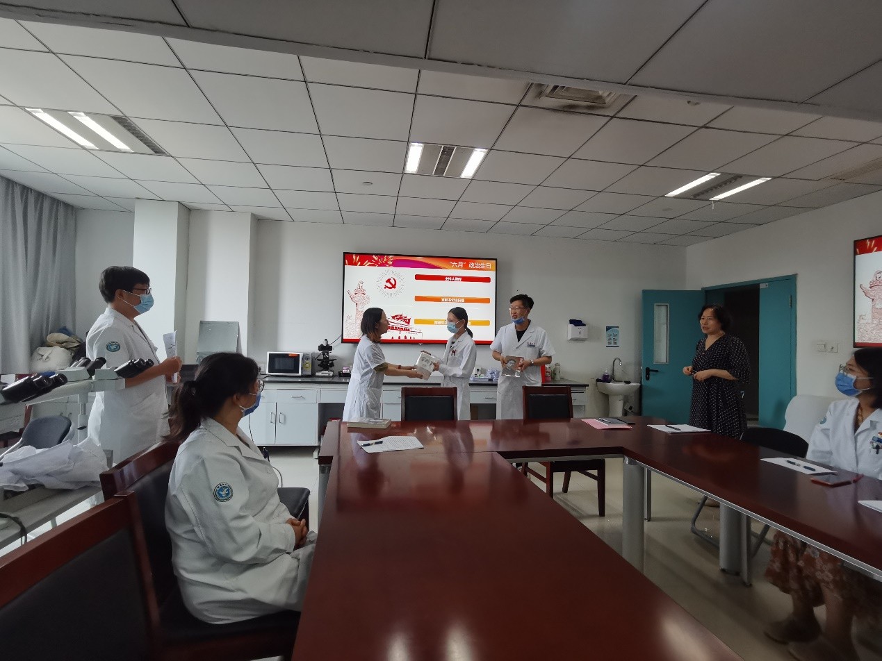 6月23日上午9点,院第二党总支十一支部于病理科会议室举行接收预备党员大会暨六月份入党的党员过政治生日活动,本次会议由组织委员马东慎同志主持,宣传委员李琳琳记录,总支书记马秋芳同志应邀参加。