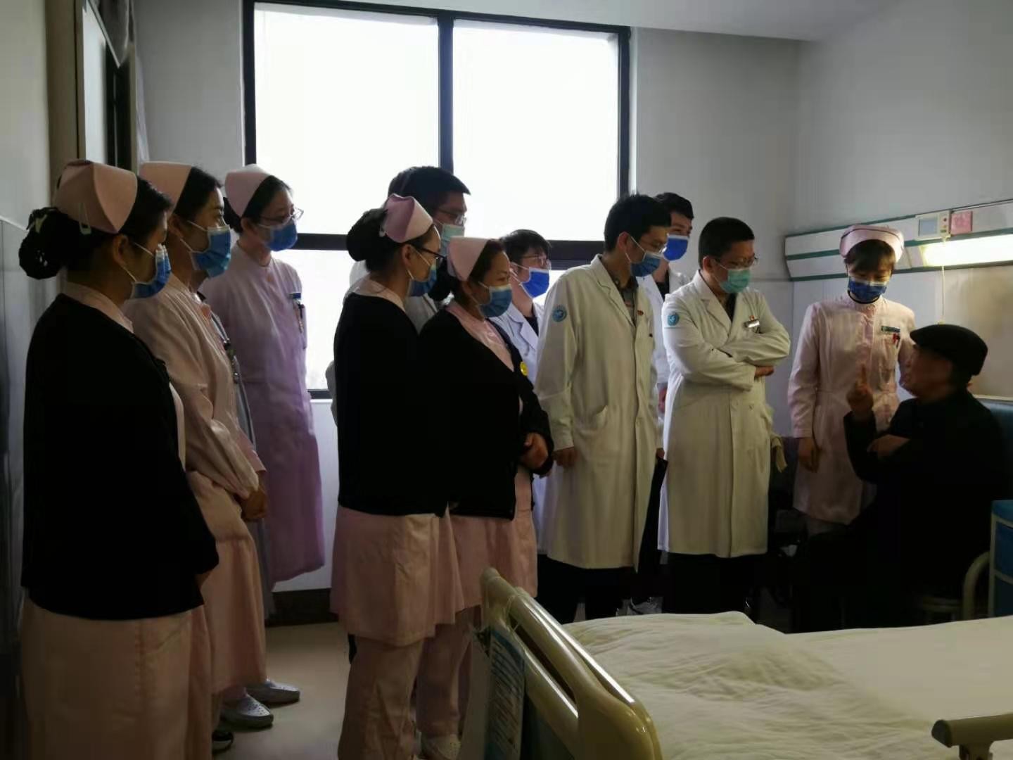 3月31日,介入科医护人员在科主任徐浩教授的带领下,集体看望了在介入科病区住院就医的92岁老党员张德秀同志。