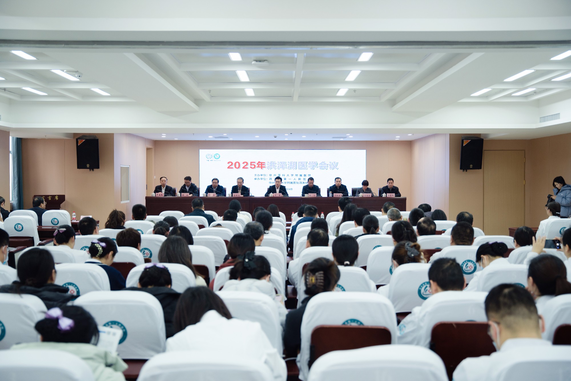 徐州医科大学、徐医附院调研组一行,宿迁市卫健委、泗洪县政府、泗洪县卫健局领导以及泗洪县第一人民医院主要领导、相关科室负责人、职工代表等200余人参会。