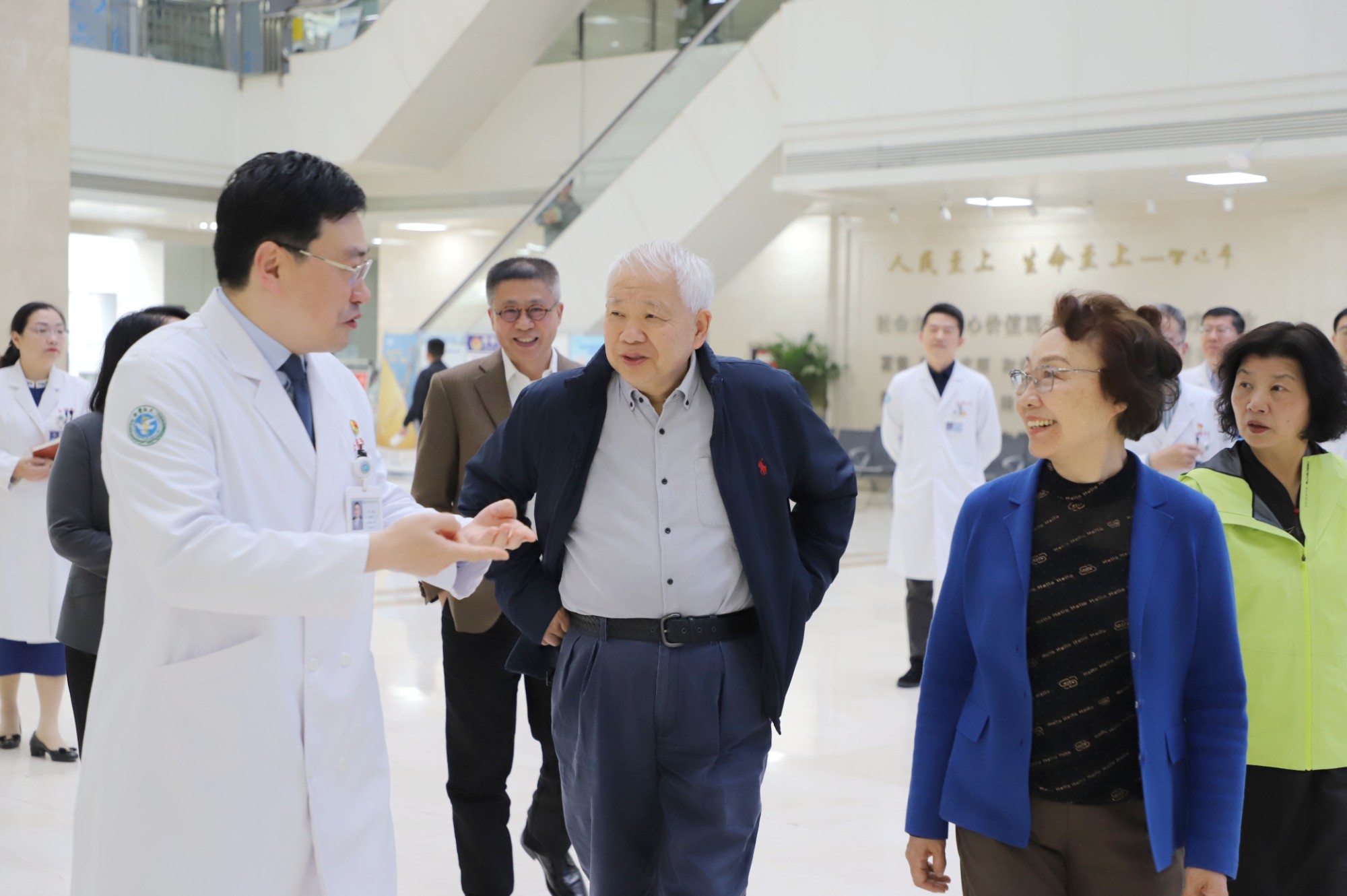 在院期间,王红阳院士、贾伟平院士、丁健院士等一行在院内进行了走访参观,对我院党建引领高质量发展所开展的工作和取得的成绩给予充分肯定,对我院全力推进“五中心一高地”建设高水平研究型医院寄予厚望。