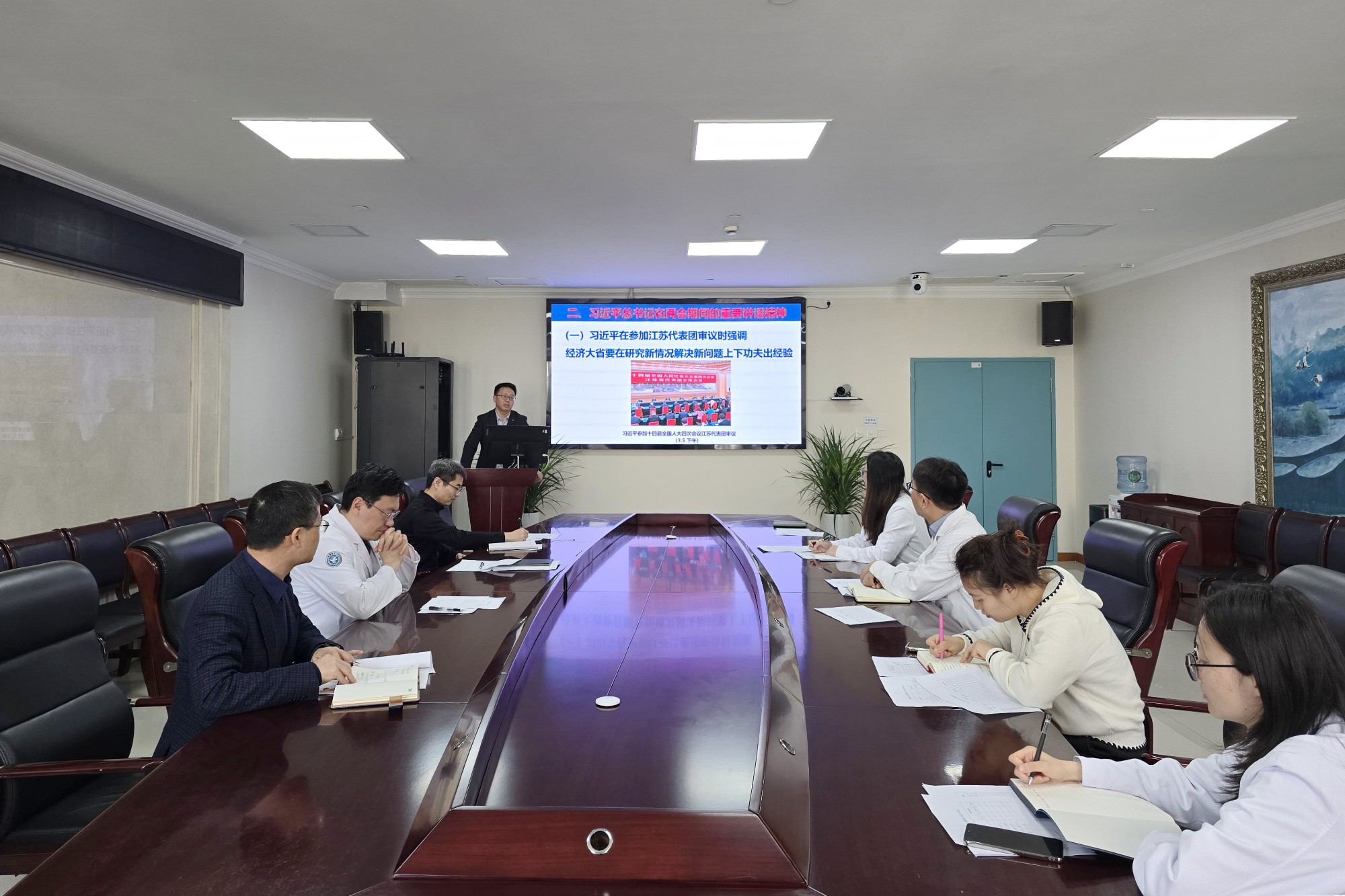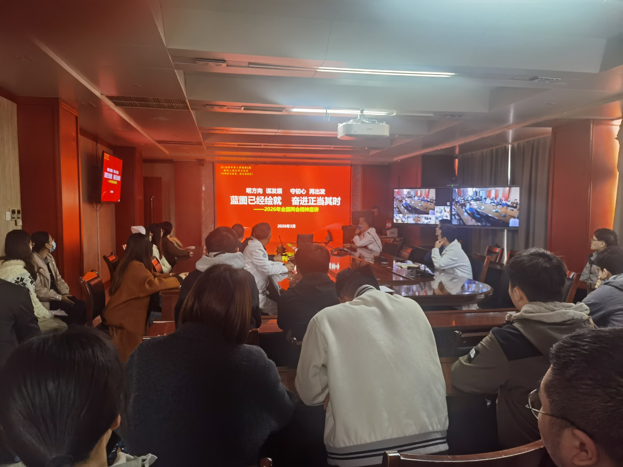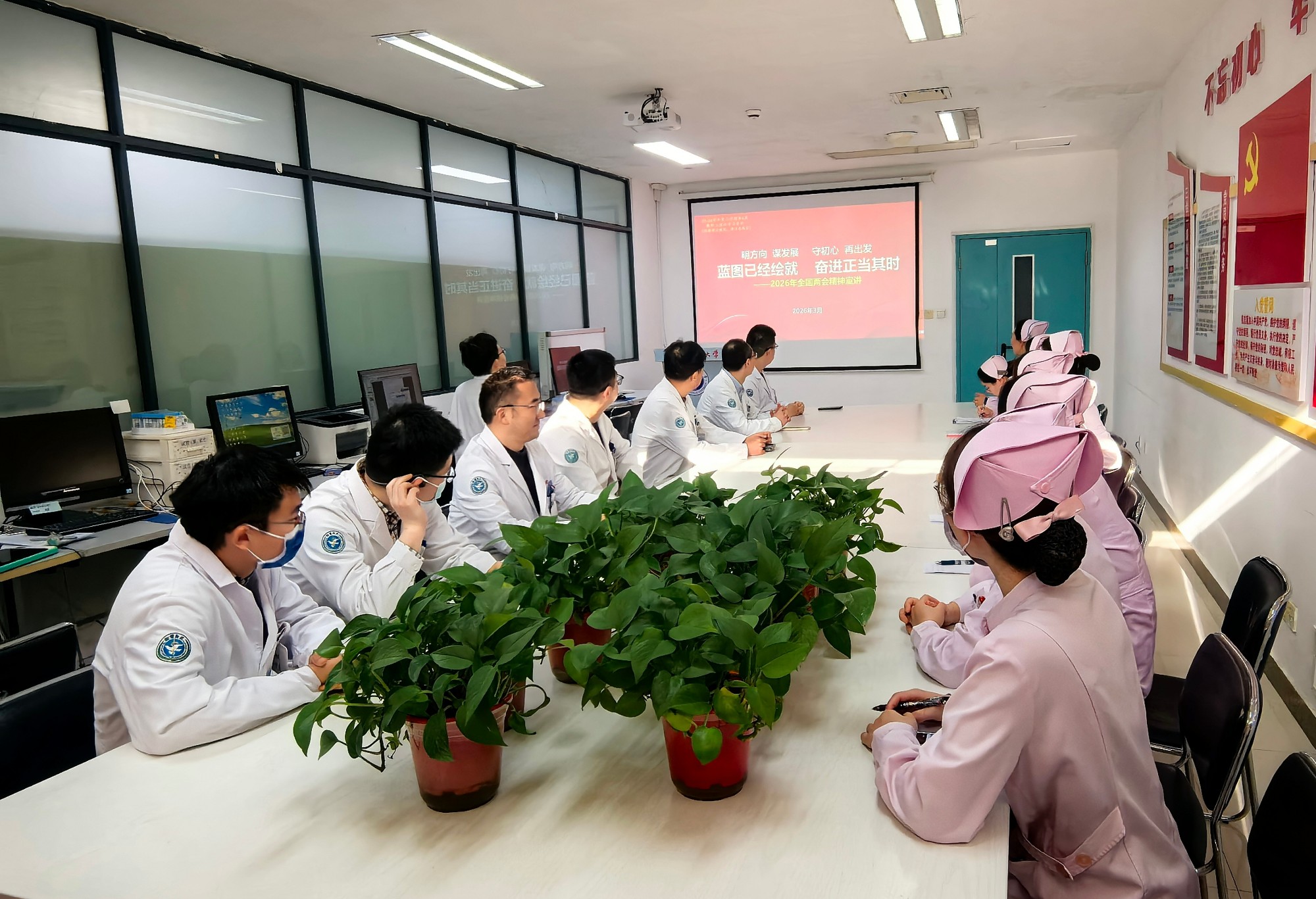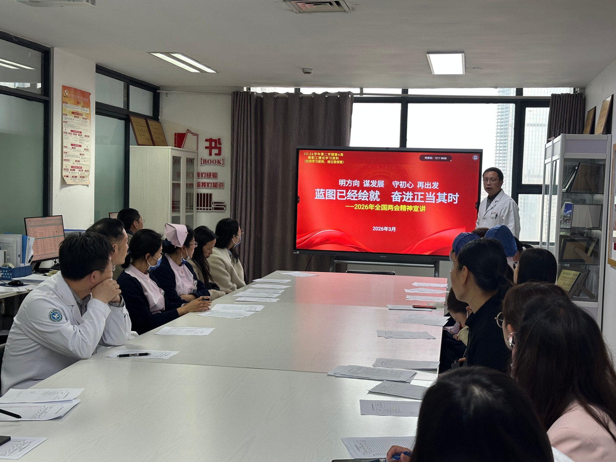 2026年全国两会是在“十五五”开局之年召开的重要会议。学习宣传贯彻全国两会精神,是当前和今后一个时期的重大政治任务。院党委统一部署,各总支、支部全面组织,全院党员和职工迅速兴起学习热潮,深入学习宣传贯彻全国两会精神,深入学习贯彻习近平总书记参加十四届全国人大四次会议江苏代表团审议时的重要讲话精神。干部职工纷纷表示,将不断推进全国两会精神入脑入心、落地见效,紧扣健康中国建设战略部署,立足医院工作实际,在研究新情况、解决新问题上下功夫、出经验,系统谋划“十五五”高质量发展路径,扎实推进2026年重点工作,为高水平研究型医院建设不断取得新突破、奋力推进健康中国建设贡献智慧和力量。