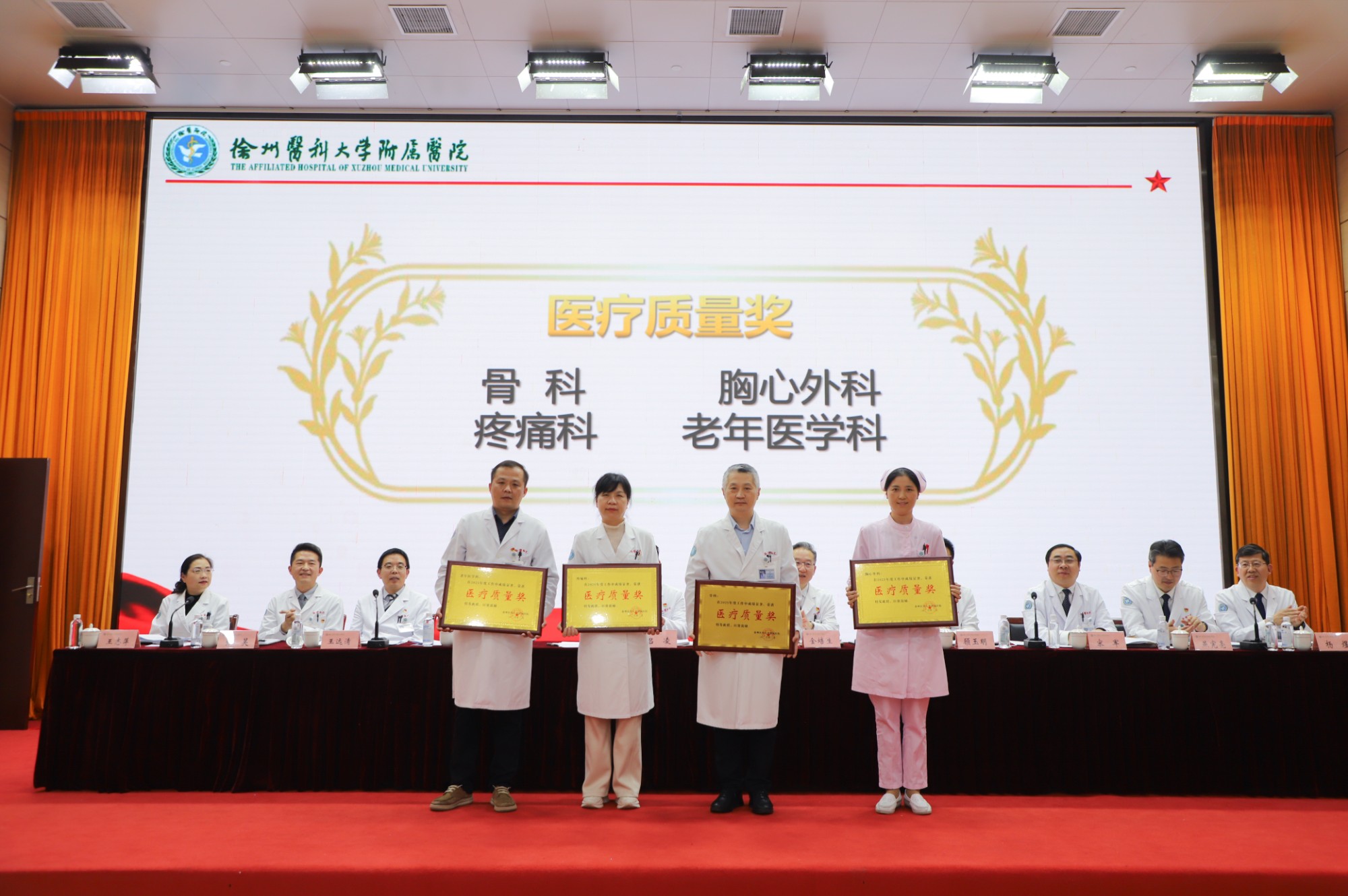 大会宣读了表彰决定,并为荣获优秀科主任、优秀职能部门负责人、优秀护士长、先进个人代表、2025年度医疗质量奖、医疗安全奖、医保管理优秀奖、先进党支部、最佳党日活动等奖项的先进集体和个人进行了颁奖。